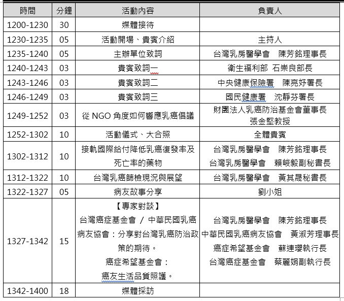 協辦單位:中華民國乳癌病友協會、台灣癌症基金會、癌症希望基金會、財團法人乳癌防治基金會、社團法人高雄市乳癌衛教學會